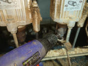 穴空け機のビットの交換は6本一度に交換するので、今までは手作業でドリルチャックキー使って緩めて交換していましたが、今回はハンマードリルに専用のチャックキーをセットして交換作業すると、あっと言う間に交換作業が終わりました。