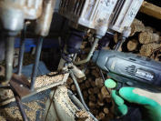 その後は、選果場にて残っていた仕事を片付け、9号ハウスにて原木への穴あけ作業を行い今日の仕事は終了です。