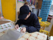 包装袋へのラベル貼り付け作業をやってもらいました。