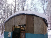 今日、5号ハウスに行き薪ストーブに薪投入しようと移動したら、何とエゾリスがストーブ小屋に入り込んでいました。
