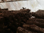 | 荒れた天候の中で原木到着 |