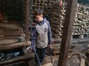 終わってから、2号ハウスで鉄ワクに薪積して今日の仕事は終了です。