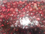 | ハスカップゼリー | ●材料 ・ハスカップ 250g ・砂糖 600g(お好みで量を加減してください) ・水 1000cc ・ゼラチン 25g ●作り方 1.解凍したハスカップ1パックを軽く水洗いしてザル等で軽く水切りします ![]() 2.それを鍋に入れて水1000ccを加え、煮立ったら、火を止めてゼラチン25グラムを加えてよくかき混ぜます 3.その後、あら熱を冷ましてから好みの容器に入れて冷蔵庫に入れて冷やして固まると完成です ![]() ※程よい酸味とまろやかな甘味が楽しめます ![]() ※小さなお子様向けのゼリーには、軽く水洗いしたハスカップを事前に砂糖をまぶして冷蔵庫に入れて数時間漬けてから御使用頂ければ、酸味もほとんど無くなりますので喜ばれます。 お店で売っているゼリーよりも美味しく成りますよ。 |
