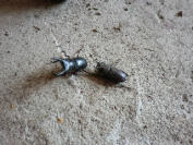 今日の朝も昨日と同じ様に、一面青空一色でした。昼頃に成って曇って行きましたが・・・ その昼ごろ、7号ハウスでの作業が終り、外に出ようとしたら、入口付近にクワガタ虫のオス・メスがペアーでいるところを発見しました。
