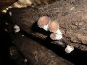 今年、植菌した原木の試験浸水を9月18日に行いました。それが、目に見える状態まで大きく成長してきました。 ホダ木自体は、まだ未熟でキノコの傘の部分が無い茎だけの常態で芽切りしてました。あと少しの期間、熟成させる必要があります。