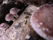散水を控えめにする理由は、今時期の気候の場合、散水し過ぎると、ホダ木内部の芽数が出来すぎて、お互いに栄養を奪い合って品質の悪いキノコしか発生しなくなるからなんです。