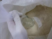薄手のゴム手袋を履いての作業でして、粉を詰めて計って圧縮機で栓をします。