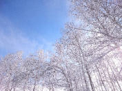 気温が氷点下から上がらないので、木の枝から雪が溶けて落ちて来ません。くっ付いたままです。