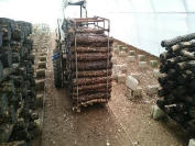 2号ハウスも3分の一が、運び込んだホダ木で埋まりました。