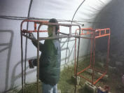 帰って来てから、9号ハウスにて、鉄ワクのペンキ塗りを行いました。