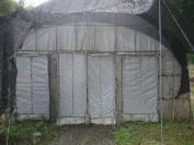 さて、植菌ハウスの方は、たっぷりと散水されて、温度を採るためにハウスの両扉を閉じています。