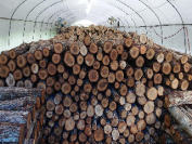 穴あけ機は9号ハウスの外に移動し、ハウス内は原木で満タンに成りました。