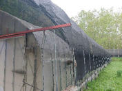 9号ハウス外の雨除けが張られたテント内での穴あけ作業です。