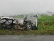 さて今日は、激しい雨が降る中むかわ町に配達に行きまして、道中、路肩から落ちているダンプを見かけました。