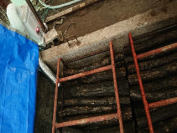 このままでは、榾木の浸水作業が出来ないので、ステンレス製の輪を作り、コンクリート製の水槽にハンマードリルで穴を空けてから、アンカーボルト用の接着剤を埋め込んでから、ステンレス製の輪をハンマーで打ち込み直しました。