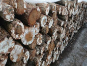 昼近くに青年部友達が、椎茸の榾木を売って欲しいとの事で、露地栽培の極太原木を圃場から運び出して車に積み込みました。