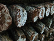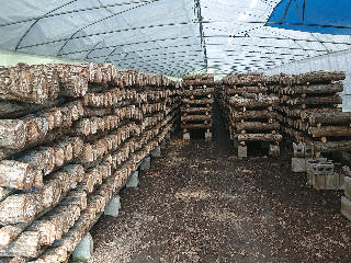 この6号ハウスの中間辺りまで進むと、4号ハウスへと入れる予定の榾木が現れます。