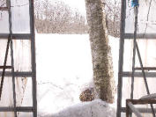 まだ、ハウスの換気ドア周りは深い雪に覆われているので全開に開ける事は出来ません。