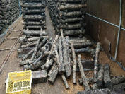 さて今日は4号ハウスで榾木の浸水発生作業中に、ガラガラと音が聞こえたので見て見ると、井桁積みの榾木が崩れていました。