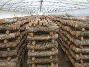 各ハウスでは最適な温度に保っているので榾木からは元気よく椎茸達が成長していました。