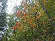 ローダーでハウス間を移動中、当園周辺の山々を見ると僅かながらに紅葉している様でした。