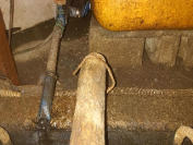 以前、ステンレスに普通の鉄用の溶接ワイヤーで溶接されていた部分があって、そこだけ錆びて直ぐに折れたので、その部分をサンダーで削ってからステンレスワイヤーで溶接し直した形です。