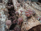 そんな中、各ハウスでは今年植えられた新榾木から椎茸達が沢山芽切りしています。