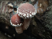 換気し過ぎると榾木の小口が乾燥してしまうのでこまめに散水して過乾燥を防いでいます。