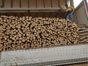 そんな中、甥っ子達が本日到着した楢の原木の枠詰め作業のお手伝いを行いました。