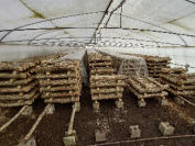 そして、30ケースで6号ハウスの5分の2を植菌原木で埋められました。