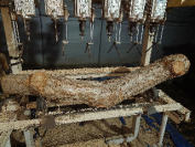 曲がり過ぎていて、穴空け機にセットして正常に穴あけするのが困難なほど曲がっている原木やら太すぎる原木、逆に細すぎる原木等々色々な原木を見る事が出来ます。