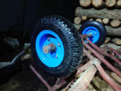 それから、先日購入してあったハウスカート用のノーパンクタイヤの交換作業も行いました。