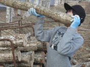 そんな中、甥っ子達が本日到着した楢の原木の枠詰め作業のお手伝いを行いました。
