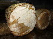 原木の状態がベストだと、菌糸が小口から元気よく出て来て白く成っています。