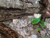 画像左側の左の原木が間違えて枯れ木に植えてしまったもので、残念ながら菌紋は見られず活着失敗です。
