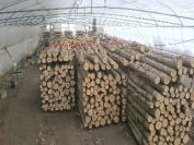 そんな中、6号ハウスで原木に打ちこんだ種菌が凍ってしまわないようにビニールを被せて保温しています。